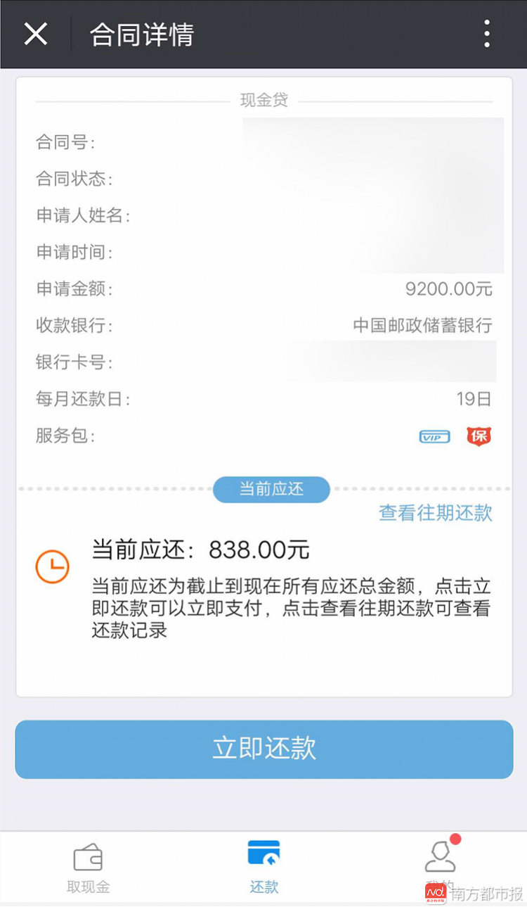 "当时我想都没想就输入了,因为我之前已是注册用户,结果几步下来,系统就提示我完成贷款,额度为9200元,并且无法取消。但我根本不想贷款,以为只是抢个红包。"张女士对南都记者说。就这样 ,张女士很快收到了9200元的到账通知,与款项一起到的,还有一份《借款服务合同》。