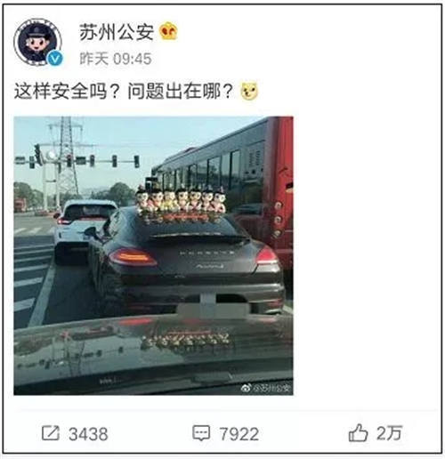 车顶趴玩偶:很酷 ,但是对不起,你违法了