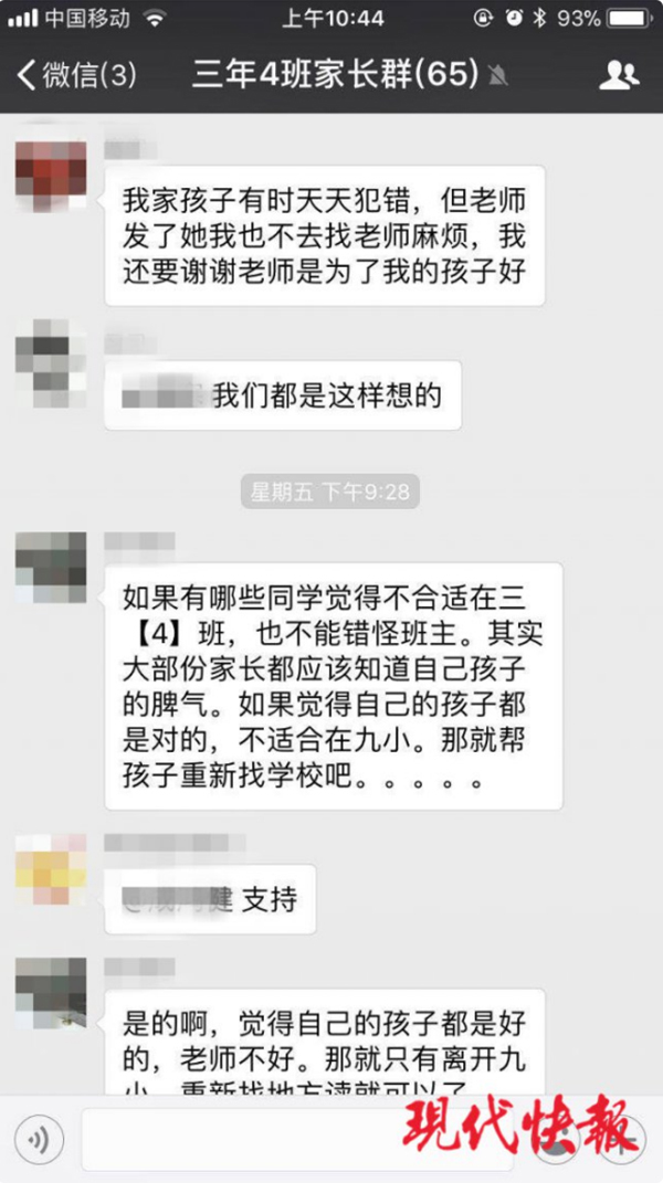 帖子发出后,就有孩子同学的家长找上唐先生,他们认为唐先生如此大张旗鼓宣扬这件事会对李老师不利,如果李老师为此调任会影响他们孩子的学习,因此不断在班级QQ群里留言劝唐先生息 事宁人。一个昵称为kekeChen123的家长还在论坛里留言说:“ 最好不要和老师、同学、学校把关系搞僵,要不孩子到哪个学校都是无法立足的 ...... 我家孩子特别调皮在学校也被老师打过 ……”