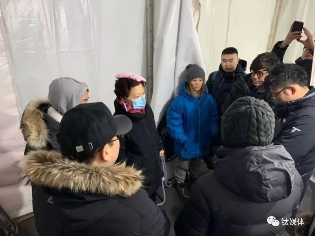 上周六深夜,北京卫视某位制片人在朋友圈中发布了这样一张照片——简陋的白色帐篷里,徐滔戴着口罩,头上敷着毛巾,在给跨年项目组开会。据这位制片人在朋友圈中的介绍,两个小时前徐滔刚刚从高达1米的舞台上跌落,脑袋重重的撞在了地上,在紧急送到南二环的北京宣武医院处理后,她又飞速赶回西五环的录制现场召开全组的安全会。
