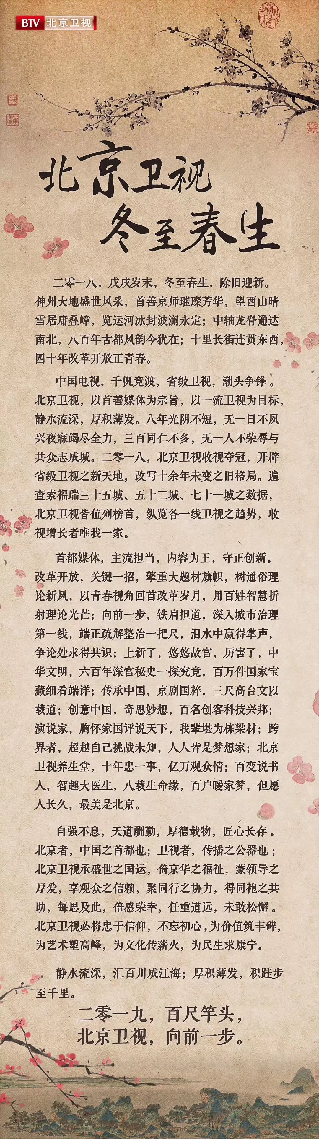 2018年是中国改革开放40周年,2019年是建国70周年。在渐趋热烈的庆祝氛围、以及守正创新的荧屏大势中,纵观省级卫视平台,也只有被称为“小央视”的北京卫视做好了准备。