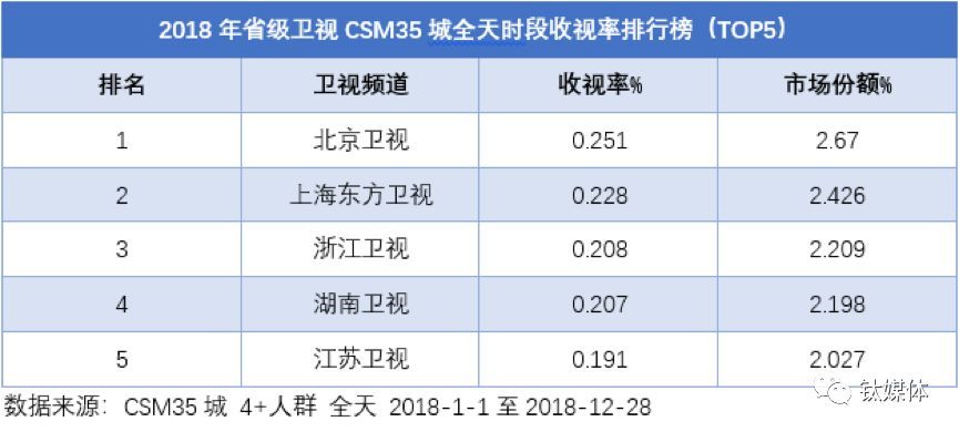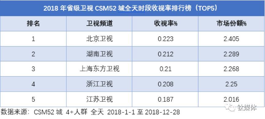 根据央视索福瑞历年统计的全国省级卫视收视排名,湖南卫视连续十五年蝉联冠军,浙江卫视、上海东方卫视和江苏卫视虽多次向第一发起冲击,但从未染指。2018年,令人意想不到的是,收视冠军最终被连续五年排名第四的北京卫视夺得,中国省级卫视的版图惊现新格局。