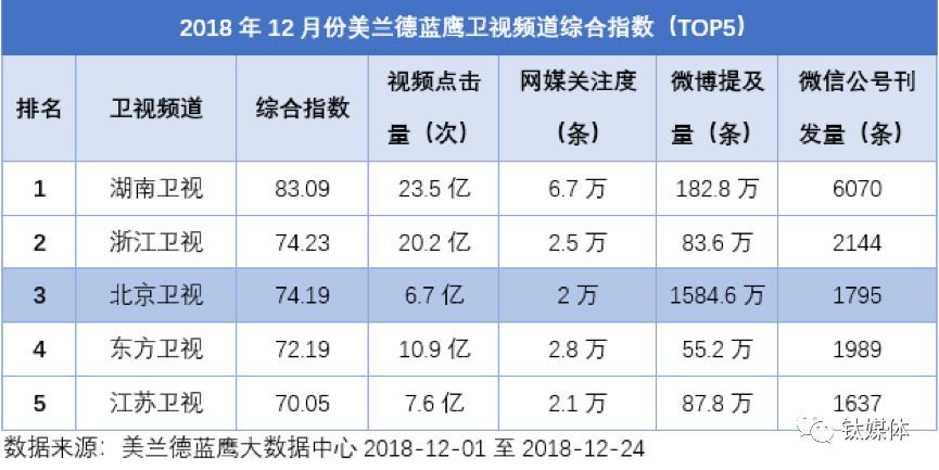更出乎很多人意料的是,在新媒体端,北京卫视的表现同样出色。尼尔森网联媒介研究提供的相关数据显示,北京卫视近三个月来在DTV、IPTV、OTT三大直播收视用户统计中排名第二;从美兰德蓝鹰大数据中心提供的数据来看,北京卫视紧随湖南卫视和浙江卫视之后排名前三。与浙江卫视的差距,也仅限于小数点的后两位。根据美兰德数据和小康榜数据:北京卫视的公信力居省级卫视第一。