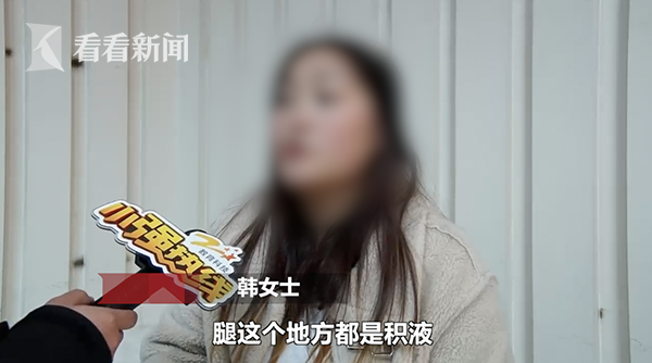 韩女士:“四月份做的第一次,就做过第一次,然后我就没有做了,但是这个做过一次之后,然后我在床上躺了有两个月。因为不能动,疼。然后中间我躺的这些天啊,然后腿这个地方,都是有积液,是基本上一个月要跑好多趟到这边来抽积液。一般抽脂的话,是不需要这样抽积液的。”