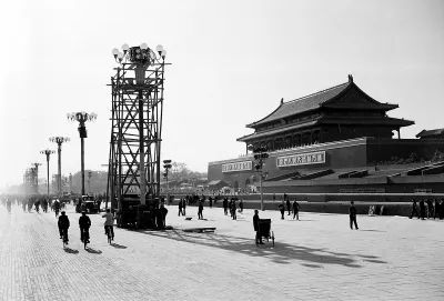 新中国成立后,路灯慢慢普及到北京的大街小巷。而家喻户晓的华灯,是在新中国成立10周年国庆前,为配合北京“十大建筑”和天安门广场扩建工程而建的。最终的造型——天安门广场9球莲花灯、长安街两侧13球棉桃灯,是周恩来总理在上报的十几种方案中亲自选定的。