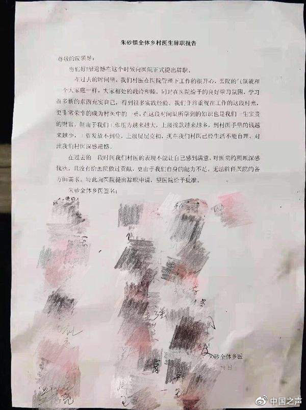 56岁的王凤涛在朱砂镇王洼村干了三十八年的老村医。网络上流传的那张辞职信上,有他的名字,王凤涛告诉中国之声记者,那天,有同行说,跟卫生院反映一下,催一下2019年的公共卫生服务费,他就答应在那封联名信上写上他的名字: