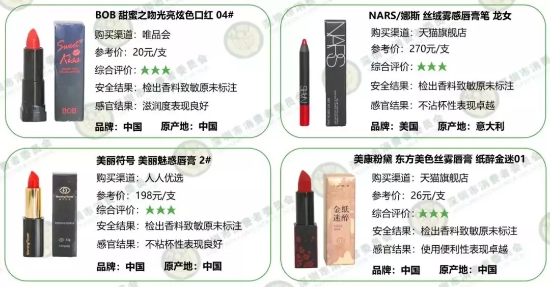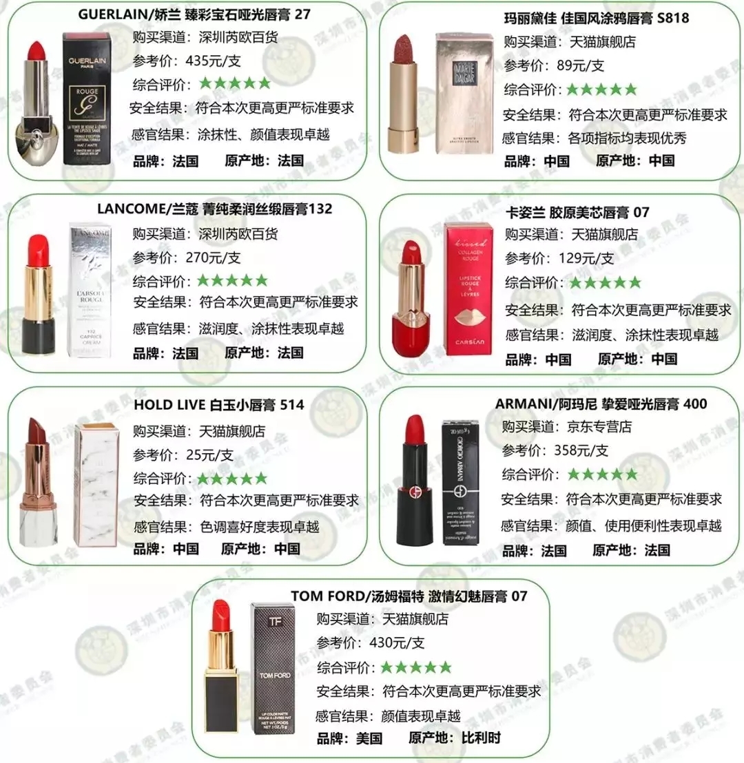 7月25日,深圳市消费者委员会公布对国内外共20个知名品牌的口红进行评测的“口红比较试验结果”——《2019年口红比较试验报告》。