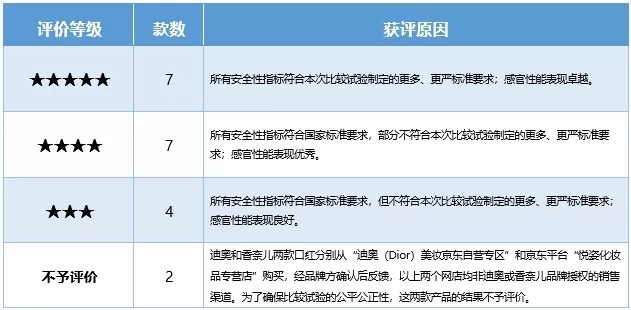 本次评测由深圳市消费者委员会、福田区消费者委员会、龙岗区消费者委员会共同委托深圳市品质消费研究院开展。此次比较试验的安全性指标设定方面,采用更多、更严原则,并从重金属、香料致敏原及感官性能三方面评价口红优劣。在感官性能指标方面,包括色调喜好度、滋润度、不粘杯性、涂抹性、口红颜值、使用便利性等项目。