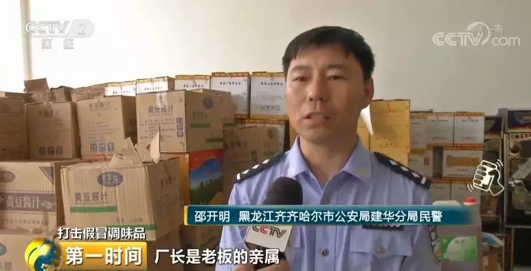 黑龙江齐齐哈尔市公安局建华分局民警 邵开明:老板主要是出资人,对整个工厂进行管理,厂长是老板的亲属,是他的侄子李某坤。他平常对工人工作进行监督,为不合格伪劣商品做账还有送货,还有他的堂哥和堂嫂,堂哥主要对酱油和醋进行勾兑,堂嫂带领工厂女工进行工作,以及对香油、料酒进行勾兑。