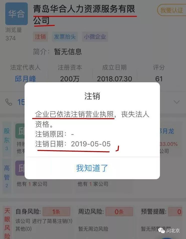 和王女士对接的工作人员电话已经停机。记者查询发现,这家 公司5月5日就已经注销,给王女士的收据日期是5月10日,上面居然还盖着公司的公章。这也给事件又盖上了一层迷雾。