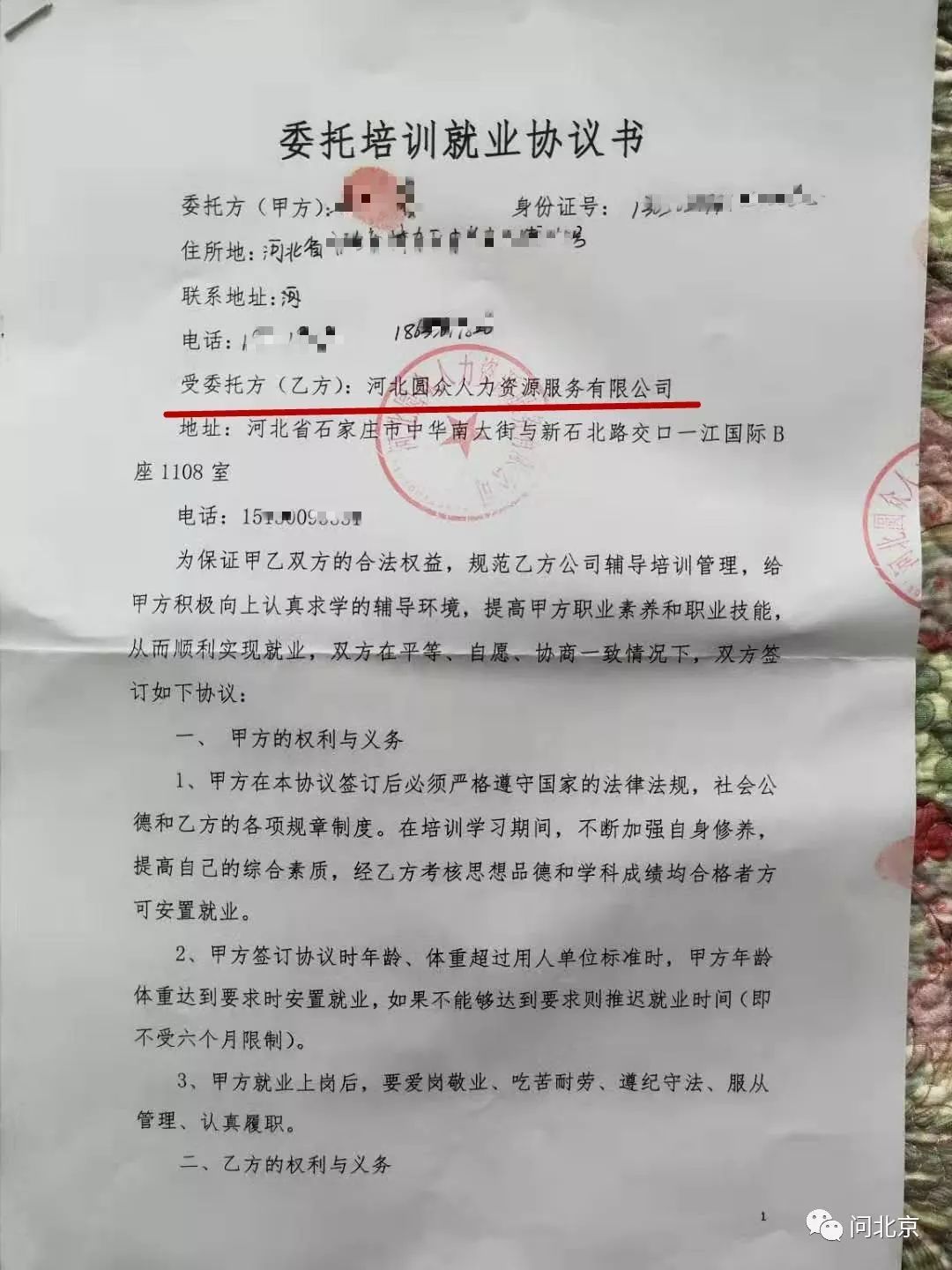 于是记者联系了河北圆众人力资源服务有限公司,这是李女士此前签协议的公司: