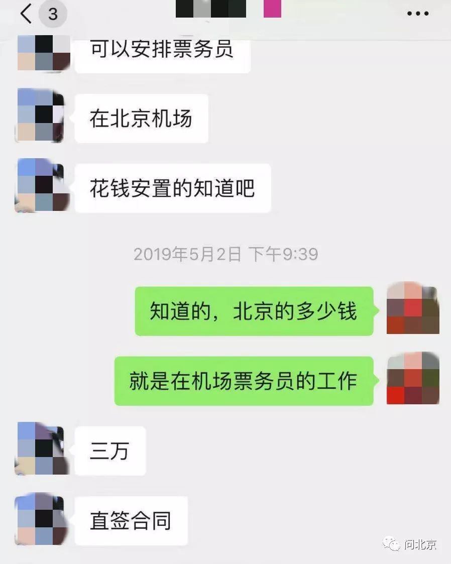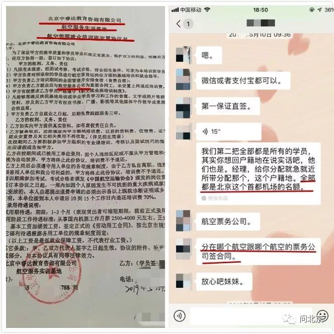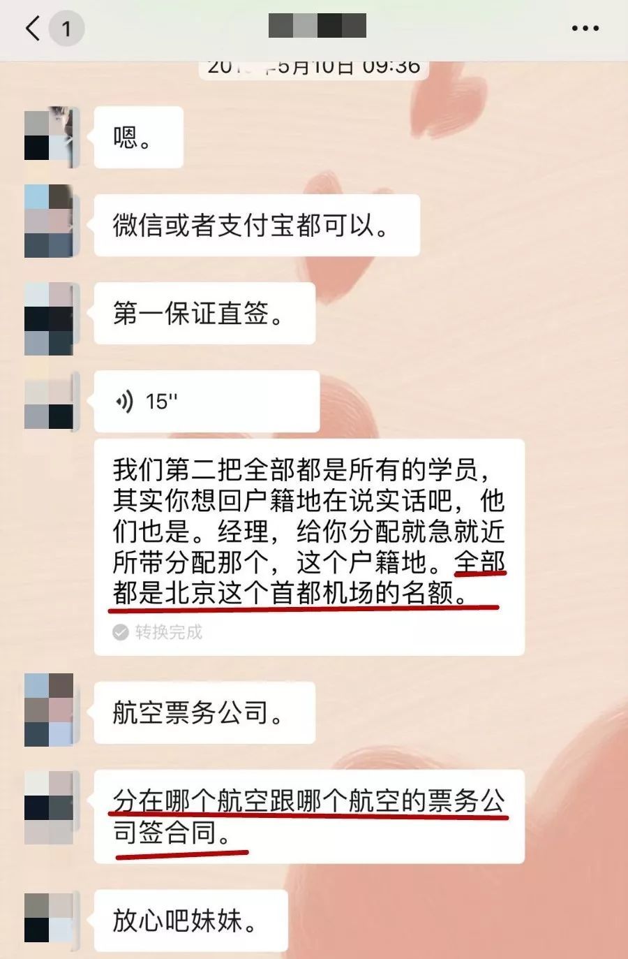李女士:大家情况都一样, 没有人在机场上班,其实他这个形式就是我们去那上课之后,我们上课差不多了,他们就会从网上面boss直聘啊什么智联上面找一些工作,就是招一些 票务代理的,然后把我们推荐过去。挺憎恨他们,毕竟也不是说好多家庭条件不是很好的孩子, 家里可能一辈子攒那么多钱就一下交过来,然后你给安排个这样的工作。