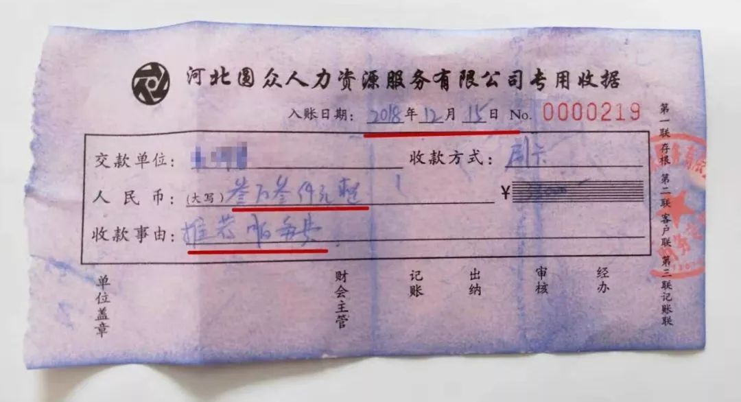 李女士:我们那边的一个熟人介绍到石家庄,因为我岁数也不小了,我妈就想(给我)找个稳定的工作,交五险一金什么的,就是交了3万3,当时 说的是可以去机场窗口,航空公司之类的上班。