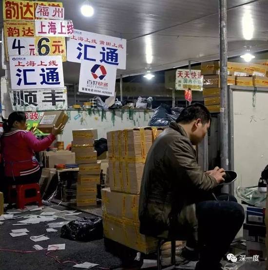 在快递摊位前的牌子上,大都写着上海上线、香港上线、深圳上线甚至纽约上线的字样,"哪里上线的意思就是指从哪里发货,你要是想把发货地改成上海,那就是上海上线。"一位摊主不以为然的说。