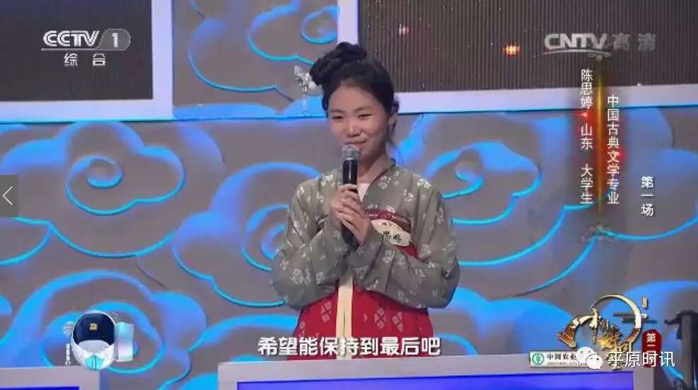 《中国诗词大会》第二季开播,决赛中有一位来自德州平原的选手--大学生陈思婷。据了解,陈思婷已经在大年初二(第一期)出境,接下来将在大年初五(第四期)、大年初八(第七期)均有出镜。