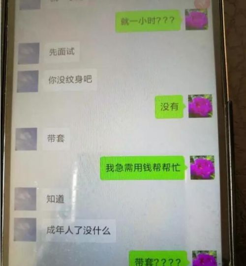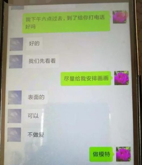小房说自己没有钱花, 就想找一个兼职,在网站上看到他们这里找模特,一小时300块钱。我一想来钱也挺快,就打电话了。和对方公司的一位王总打完电话后,对方要求先加个微信聊聊基本情况,只是,这聊天的内容,有些让人汗颜。
