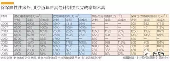 如果这一计划得以落实,将很大机会逆转供求失衡、房价上涨预期。但问题的关键恰恰是,北京的宅地供应计划能否完成?一个不容忽视的事实是,2013年至2016年间,北京的供地计划基本上就没完成过。 尤其是2016年,土地供应可谓十分惨淡,部分供应的地块位于郊区,绝对数量也不多,商品房实际供地完成率仅为12.1%。更何况,"以房控人"本身就是北京疏解人口的手段,土地供应不那么积极也就可以理解了。